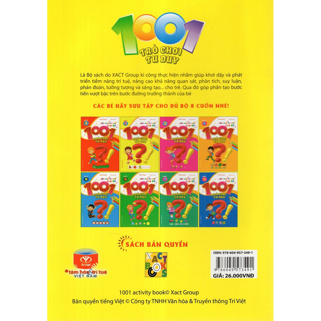 Trọn bộ 8 cuốn 1001 Trò chơi tư duy, là bộ sách của Công ty TNHH Văn hóa và truyền thông Trí Việt (TriVietBooks) mua bản quyền của Xact Group, ra mắt độc giả với những bài toán hay và thú vị.