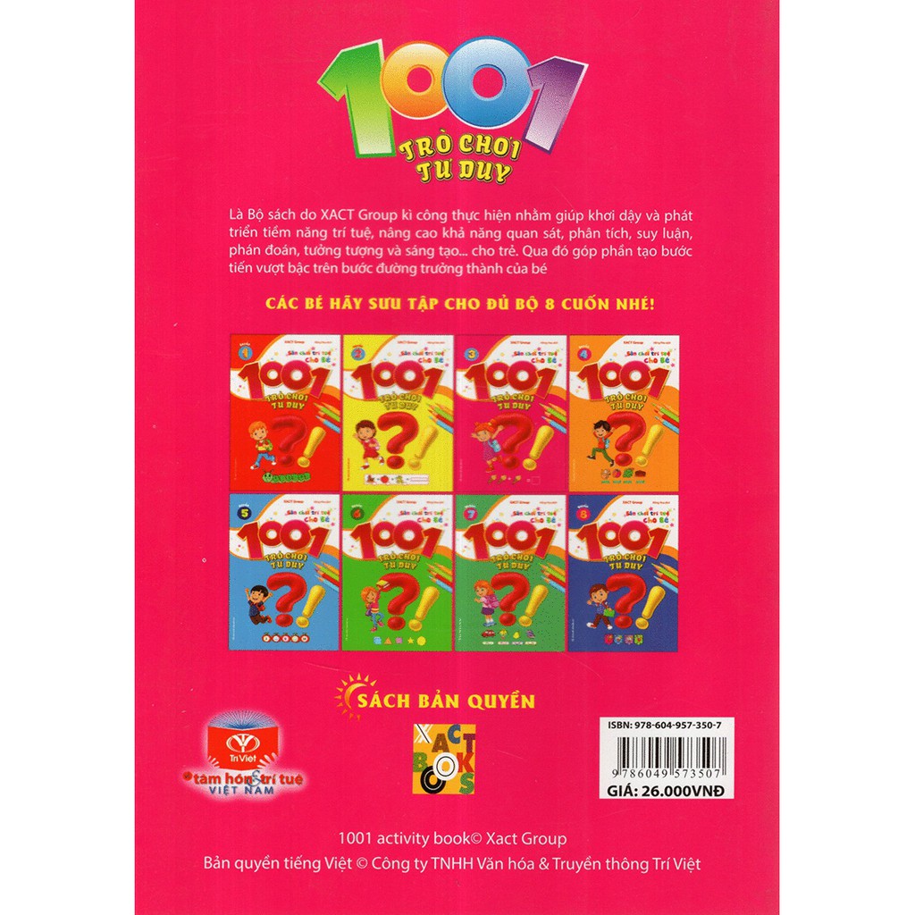 Trọn bộ 8 cuốn 1001 Trò chơi tư duy, là bộ sách của Công ty TNHH Văn hóa và truyền thông Trí Việt (TriVietBooks) mua bản quyền của Xact Group, ra mắt độc giả với những bài toán hay và thú vị.